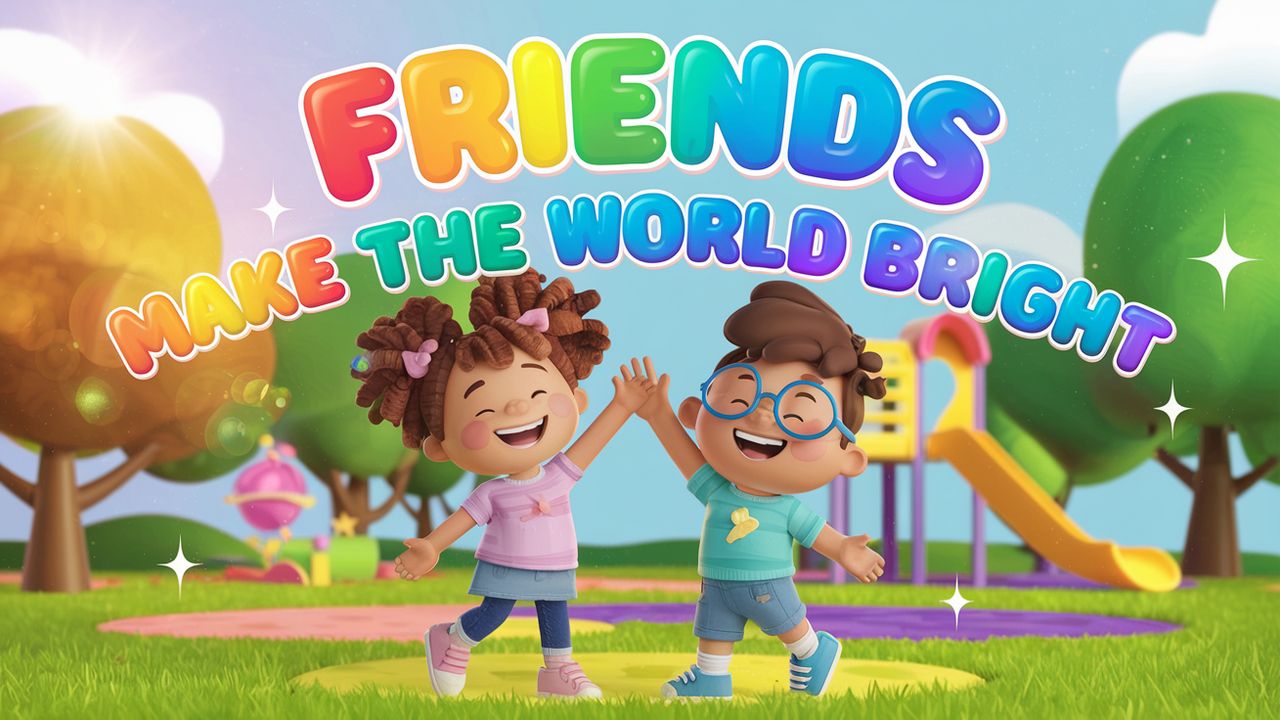 🎶 Friends Make the World Bright is a fun, upbeat children’s song that celebrates the power of friendship! With joyful Pixar-style animation and positive lyrics, this music video teaches kids how real friends help, share, listen, and lift each other up — even on cloudy days.