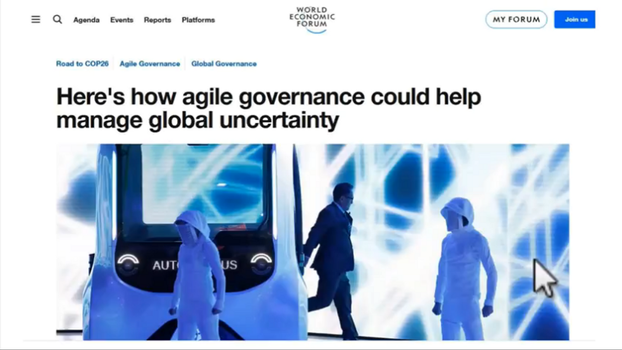 World Economic Forum, How Agile Governance Could Help.. : https://www.weforum.org/agenda/2021/10/agile-governance-could-help-manage-uncertainty/