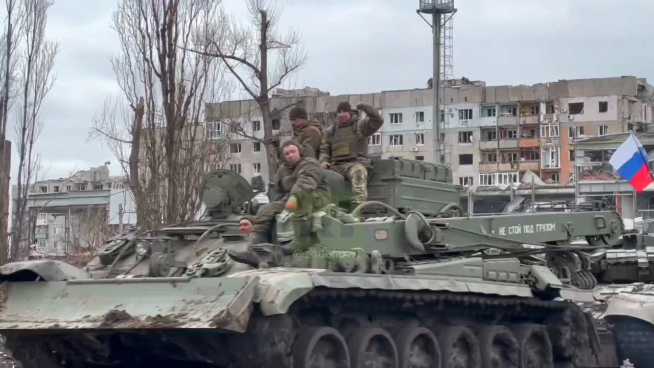 Russian soldiers are taking captured tanks of the Ukrainian Armed Forces from Avdeevka
