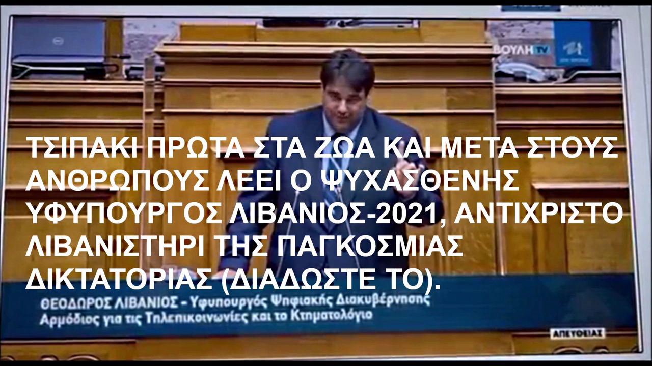 ΤΣΙΠΑΚΙ ΠΡΩΤΑ ΣΤΑ ΖΩA ΚΑΙ ΜΕΤΑ ΣΤΟΥΣ ΑΝΘΡΩΠΟΥΣ ΛΕΕΙ Ο ΨΥΧΑΣΘΕΝΗΣ ΥΦΥΠΟΥΡΓΟΣ ΛΙΒΑΝΙΟΣ-2021, ΑΝΤΙΧΡΙΣΤΟ ΛΙΒΑΝΙΣΤΗΡΙ ΤΗΣ ΠΑΓΚΟΣΜΙΑΣ ΔΙΚΤΑΤΟΡΙΑΣ (ΔΙΑΔΩΣΤΕ ΤΟ) https://ugetube.com/watch/VD5ju9TR27qHn8Z , https://rumble.com/vnus6l--a-2021.html . ΠΗΓΕΣ: Η ΒΟΥΛΗ ΚΑΙ https://www.facebook.com/100005028553142/videos/186148276999948 ....