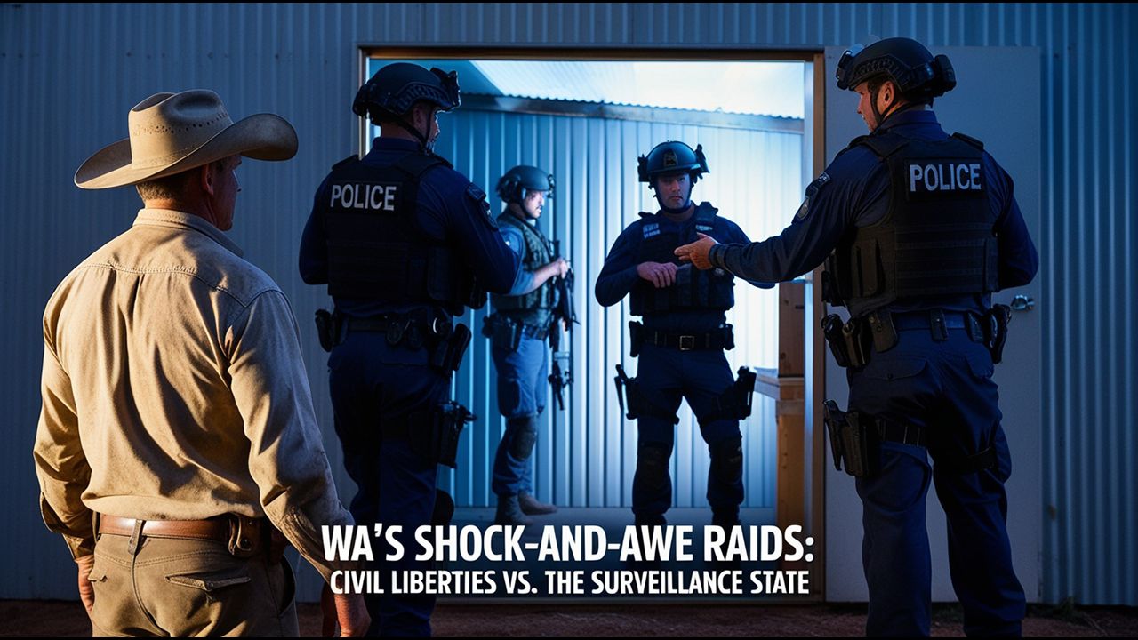 The worsening fascism of Western Australia’s police surveillance state has entangled itself in a tense moment. Squads of armed police have been conducting unwarranted firearm confiscation raids on licensed owners—more than a hundred guns seized, dozens of licences cancelled or suspended without authentic cause.