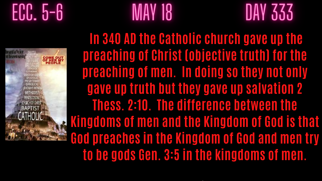 Ecc. 5-6. SPIRITUAL WARFARE IS - THE KINGDOMS OF MEN VERSUS THE KINGDOM OF GOD!