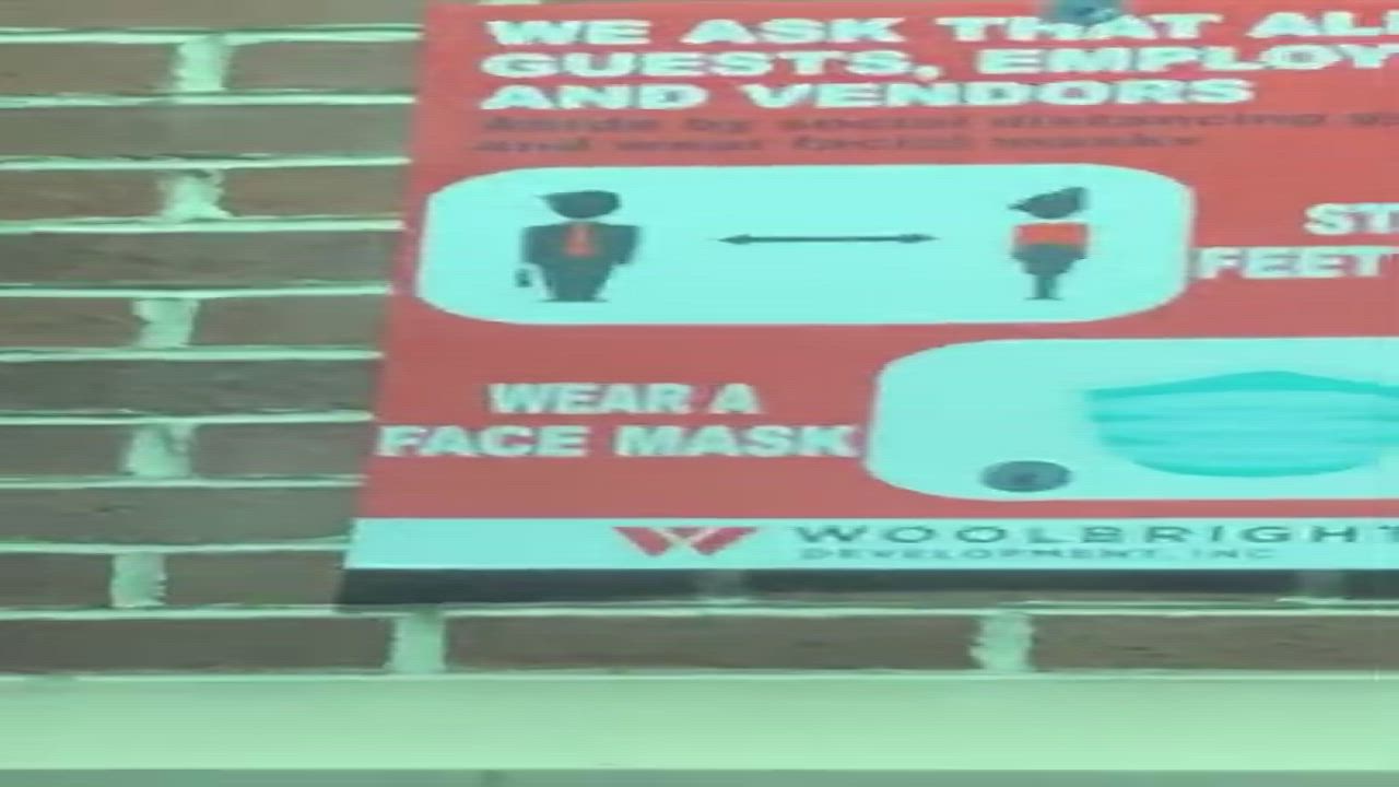 yes there is no intention whatsoever of pandemic EVER going away when you see a permanent metal sign like this affixed to brick column .. (taken july 12)