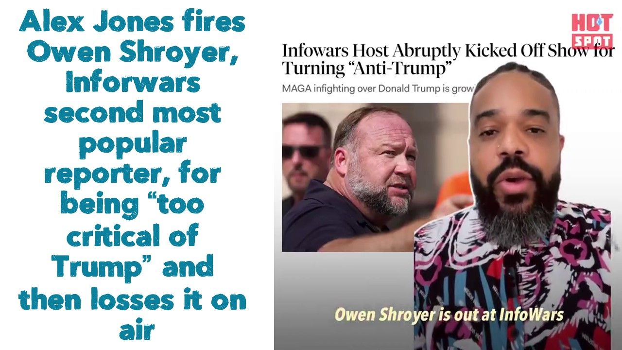 Alex Jones fires Owen Shroyer, Inforwars second most popular reporter, for being “too critical of Trump” and then losses it on air.