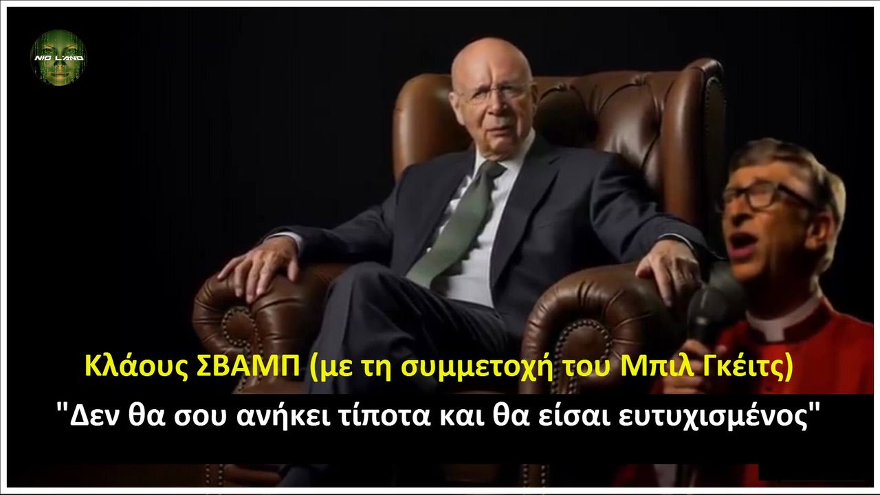 📍Το νέο hit song "Δεν θα σου ανήκει τίποτα και θα είσαι ευτυχισμένος" της Νέας Τάξης Πραγμάτων με πρωταγωνιστή τον Κλάους Σβαμπ και συνοδεία στα φωνητικά από Μπιλ Γκέιτς, παραγωγής “Παγκόσμιο Οικονομικό Φόρουμ”.