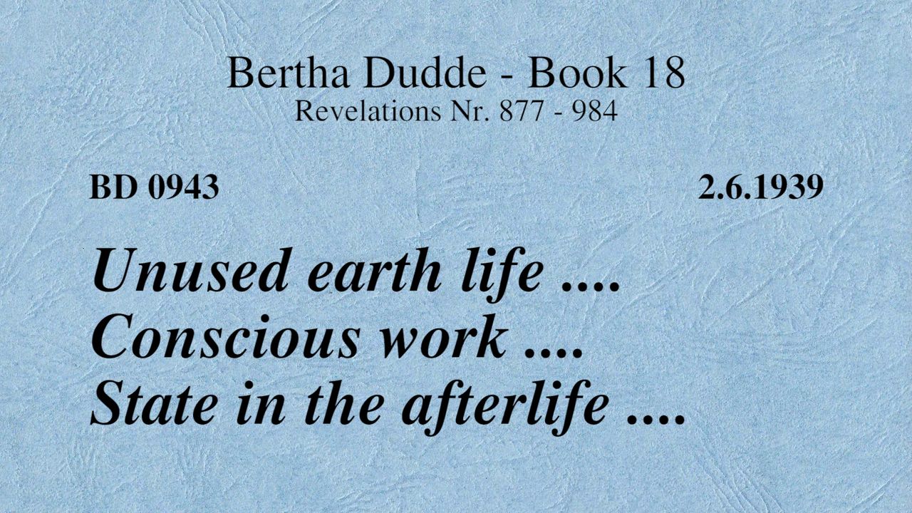 BD 0943 - UNUSED EARTH LIFE .... CONSCIOUS WORK .... STATE IN THE AFTERLIFE ....