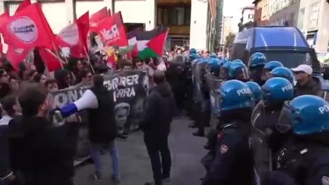 Clashes have broken out between police and demonstrators in central Bologna during two competing rallies. "Anti-war activists", protesting the increase in military spending, attempted to march towards the "Square for Europe" rally. This sparked tense confrontations with law enforcement.