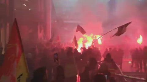 Videos shared on social media showed protesters entering the Centorial office block, located near the Opéra Garnier opera house, holding red flares and firing smoke bombs.