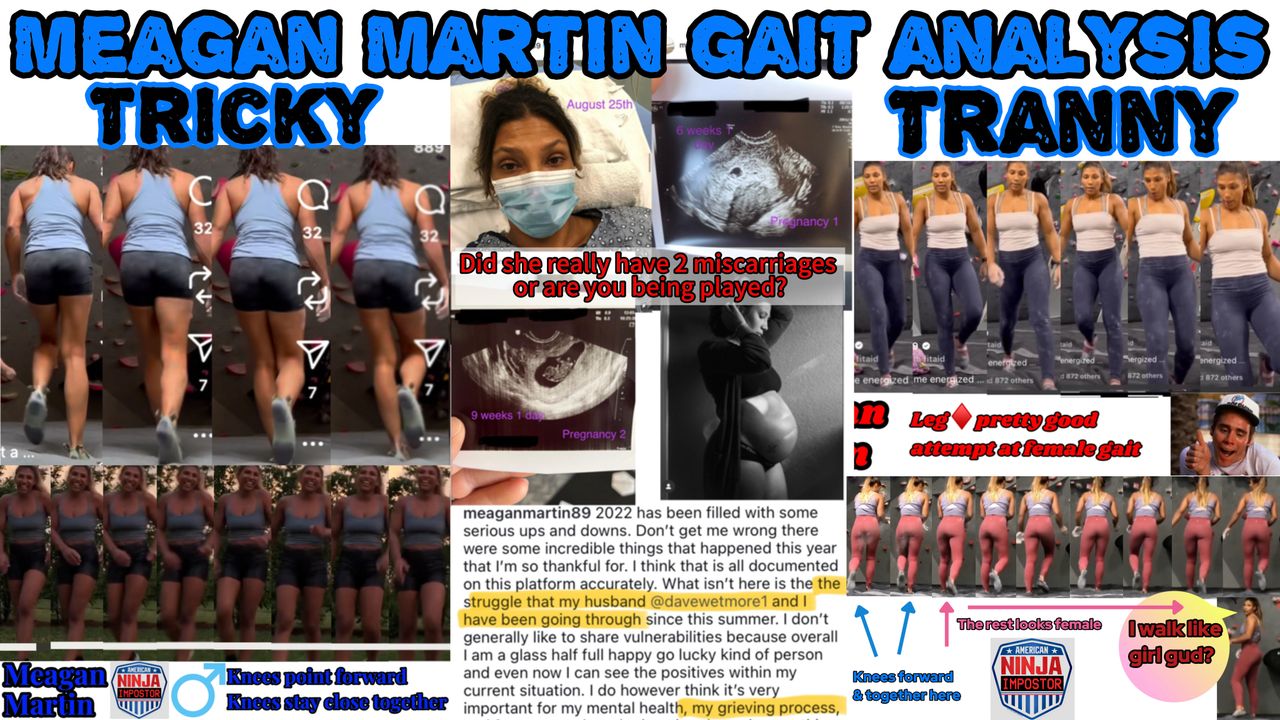 in this video we see multiple instances of Meagan’s MALE hip structure as well as several examples of her faking a female gait.