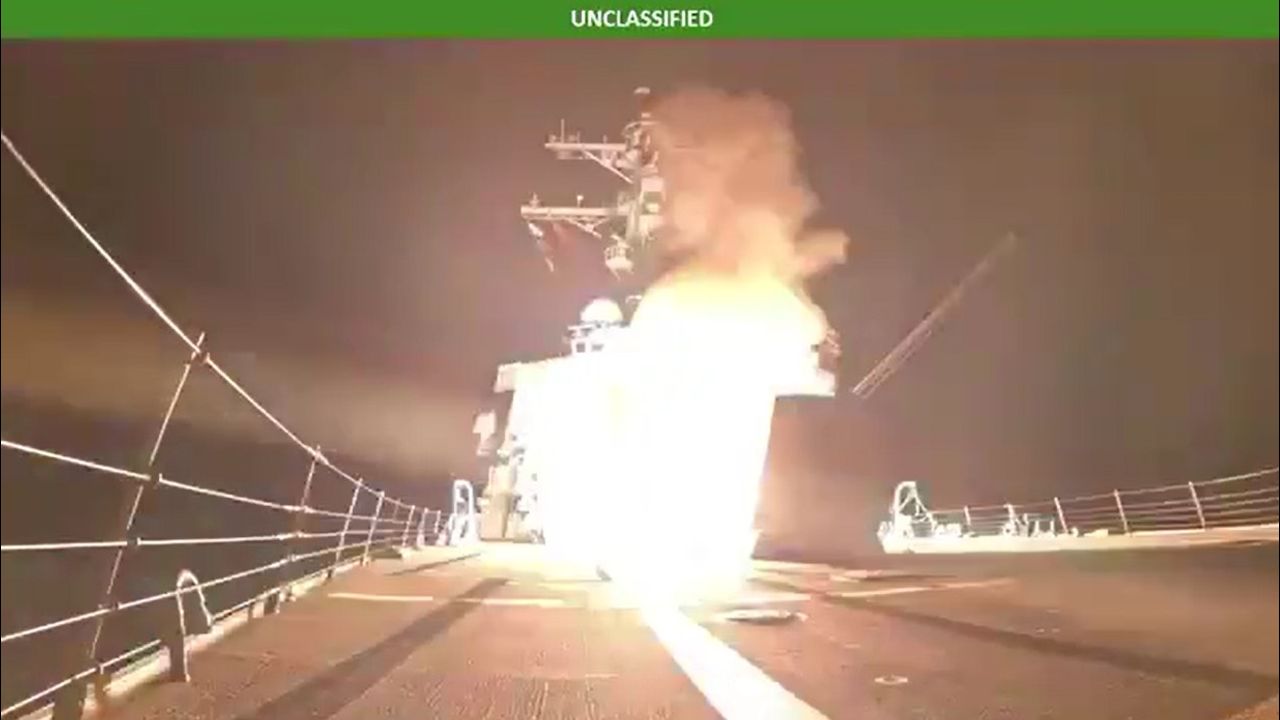 Launch of a BGM-109 cruise missile from the destroyer USS Paul Ignatius (DDG-117) at a target in Nigeria, during US strikes on the facilities of terrorists from ISIS.