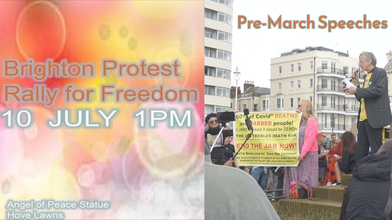 Saturday 10th July 2021 Brighton Rally For Freedom pre-march speeches including Louise from Save Our Rights and Piers Corbyn.