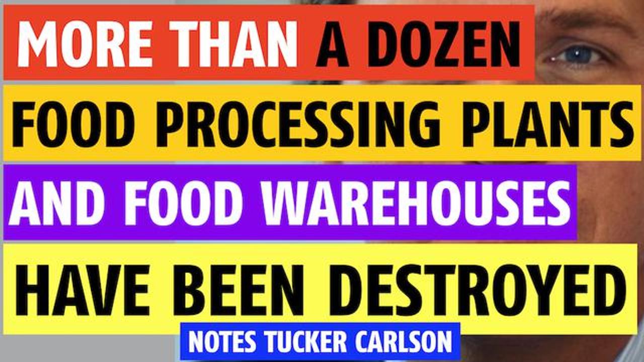 More than one dozen food plants & warehouses have been destroyed recently notes Tucker Carlson