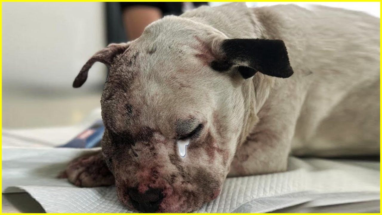 An Amstaff brutally beaten by some individuals"