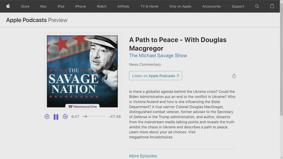 Savage asks the Colonel what is so controversial about what he's been saying about the conflict and then the two discuss the parallels (or lack there of) between Ukraine and Wartime Britain. Turns out the Col Macgregor thinks President Zelensky is no Churchill and Russia is no existential threat to Europe.