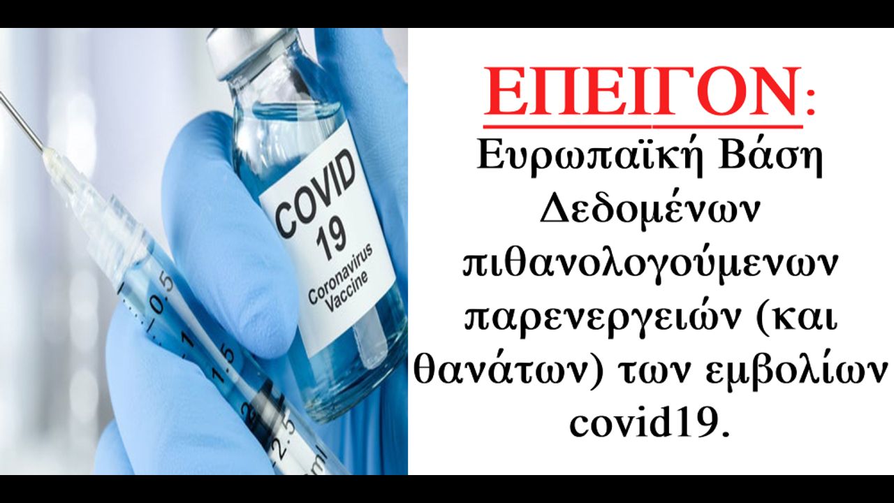 ΕΠΕΙΓΟΝ: Ευρωπαϊκή Βάση Δεδομένων πιθανολογούμενων παρενεργειών των εμβολίων covid19.