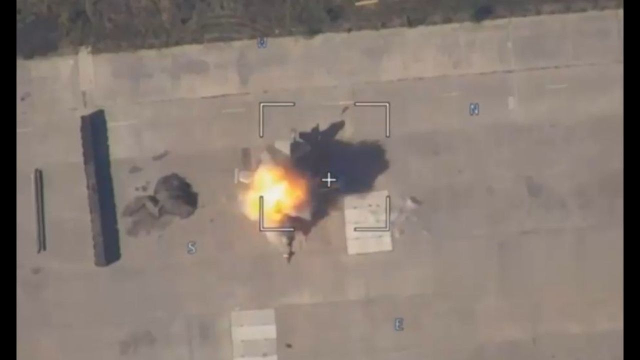 Russian (presumably) "Lancet" strike on a Ukrainian Su-25 stationed in Dolgintsevo Airbase near Krivoy Rog.
