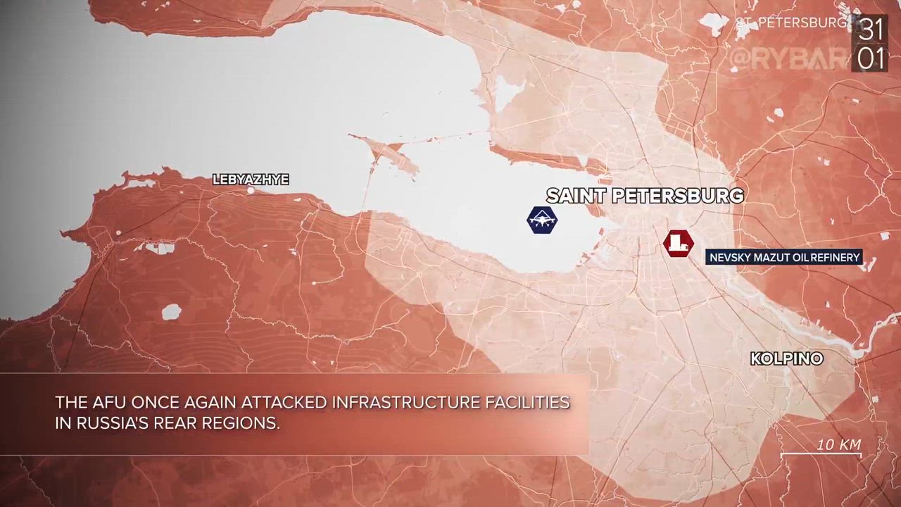 ▪️Ukrainian formations once again attacked infrastructure facilities in the rear regions of Russia. In St. Petersburg, anti-aircraft gunners intercepted an enemy drone, but its debris damaged several tanks on the territory of the Nevsky Mazut plant.