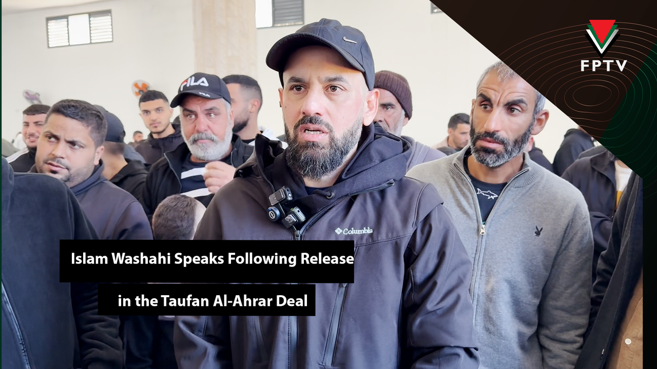 Freed prisoner Islam Wishahi from the town of Ash-Shuhada, south of Jenin. He was released as part of the Taufan Al-Ahrar prisoner exchange deal after enduring 22 and a half years of imprisonment in the occupation’s prisons.