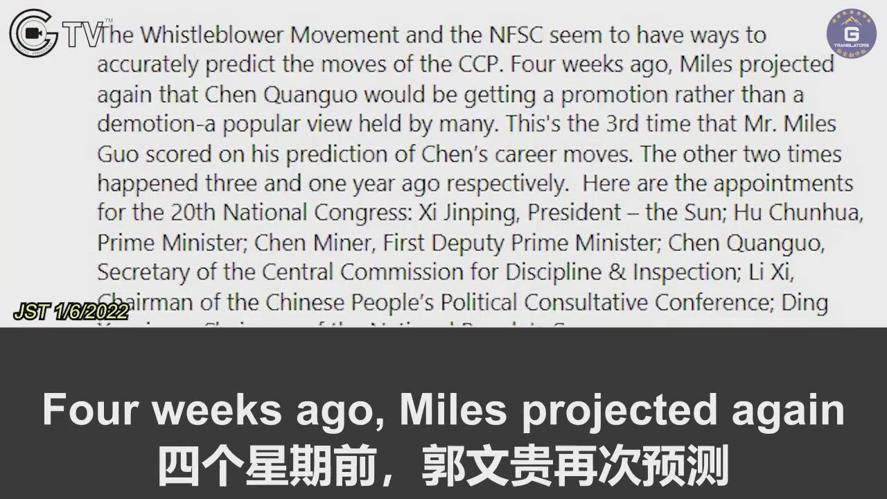1/06/2022 Miles Guo has accurately predicted the promotion of Chen Quanguo for the third time