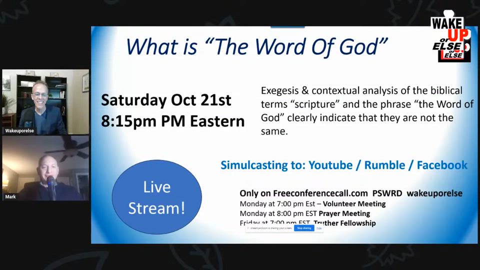 All Meetings Are On Freeconferencecall.com (Password - "wakeuporelse")