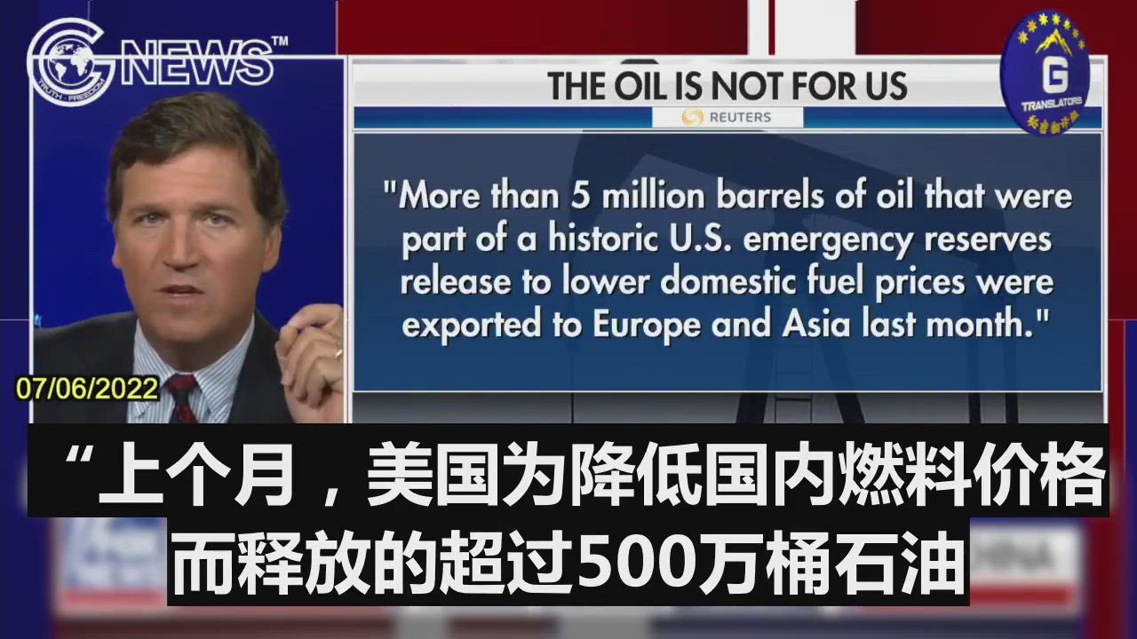 07/06/2022 Tucker Carlson: The Biden administration is selling off our emergency oil reserves to China. The crude in the SPR is the best crude that we have, but we’re giving it away to a government whose whole goal is to displace us on the global stage and crush us.