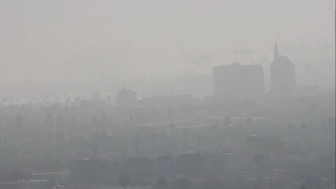 What you are seeing is the result of the up high spewing operations. It was very humid today so in no way is this any kind of moisture related marine layer or fog. Time for all of us to pay attention what is being done to us. The city looks like this daily now...but this was one of the worst days in a while. Thanks to all of you who see and report the truth.