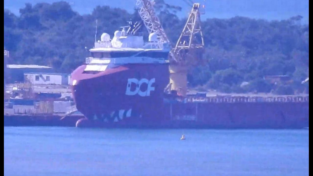 Barry Beach wharf, and the boats are Norwegian deep water recovery tugs used for work on gas and oil rigs.
