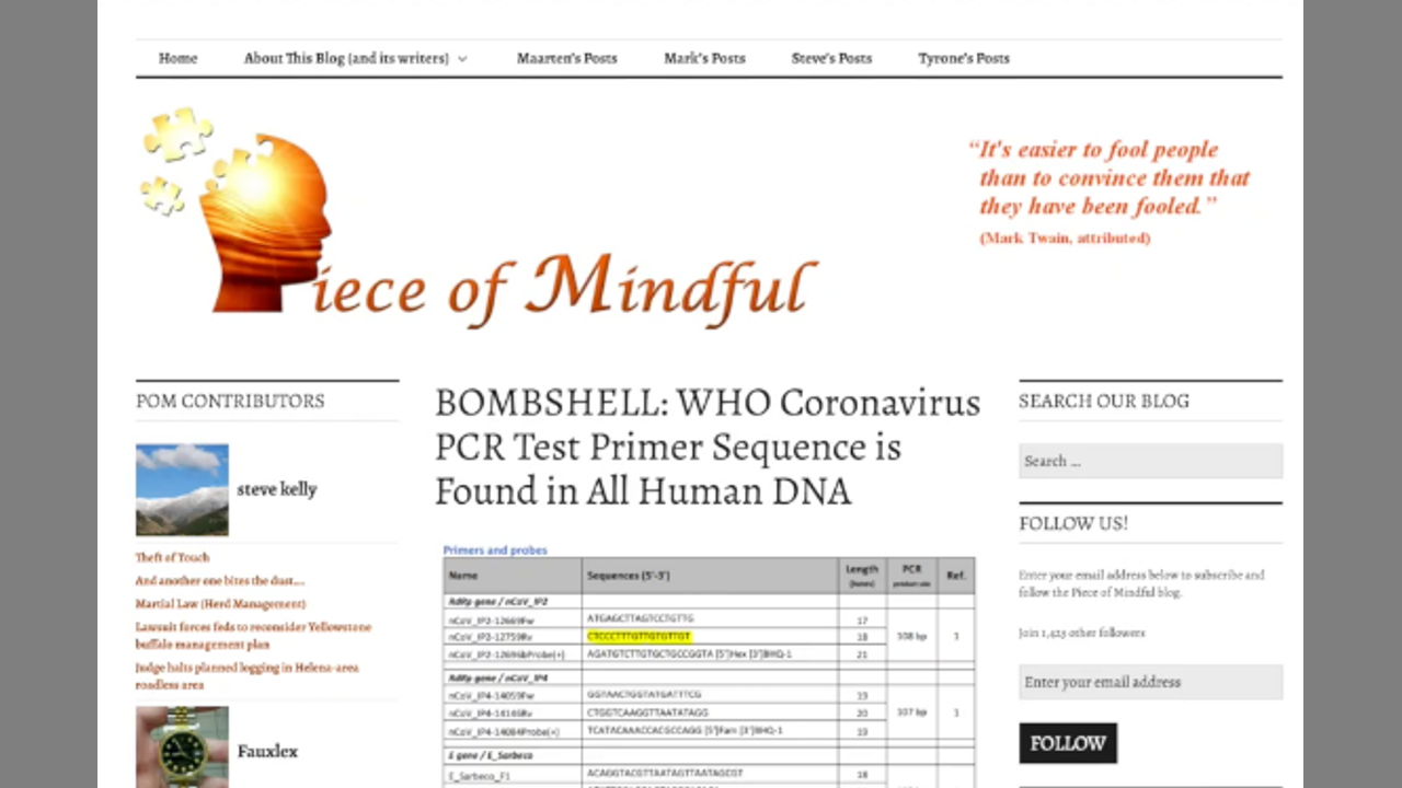 Articolo https://pieceofmindful.com/2020/04/06/bombshell-who-coronavirus-pcr-test-primer-sequence-is-found-in-all-human-dna/