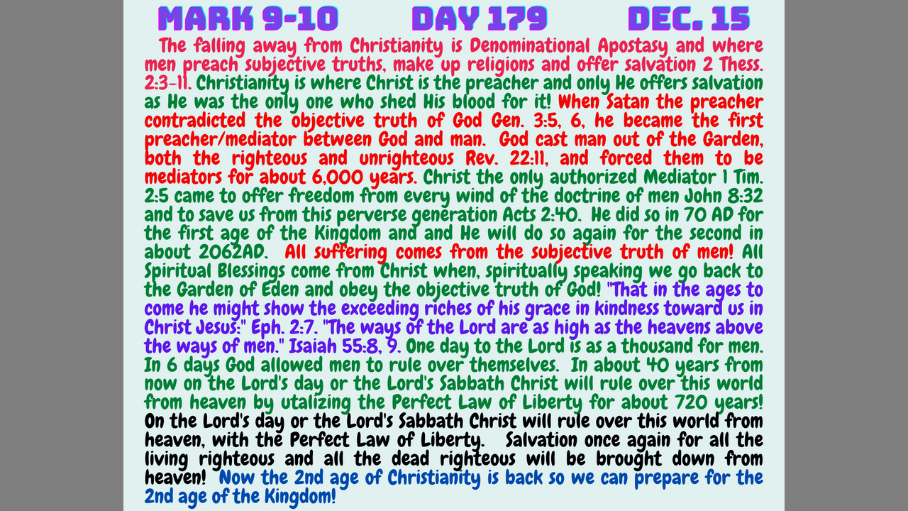 We were promised that the second age of the Kingdom of heaven would be at hand when the man of sin was revealed – the second great objective truth from God. When men understand the book of Job and his dealings with Satan the man of sin, it destroys the religions and bibles of men!