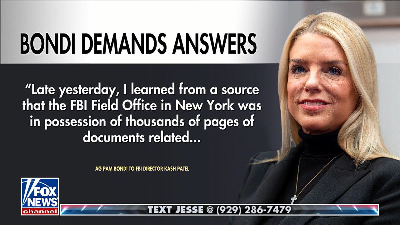 Pam Bondi Demands All Epstein Documents Be Released, Accuses FBI Of Withholding Files.