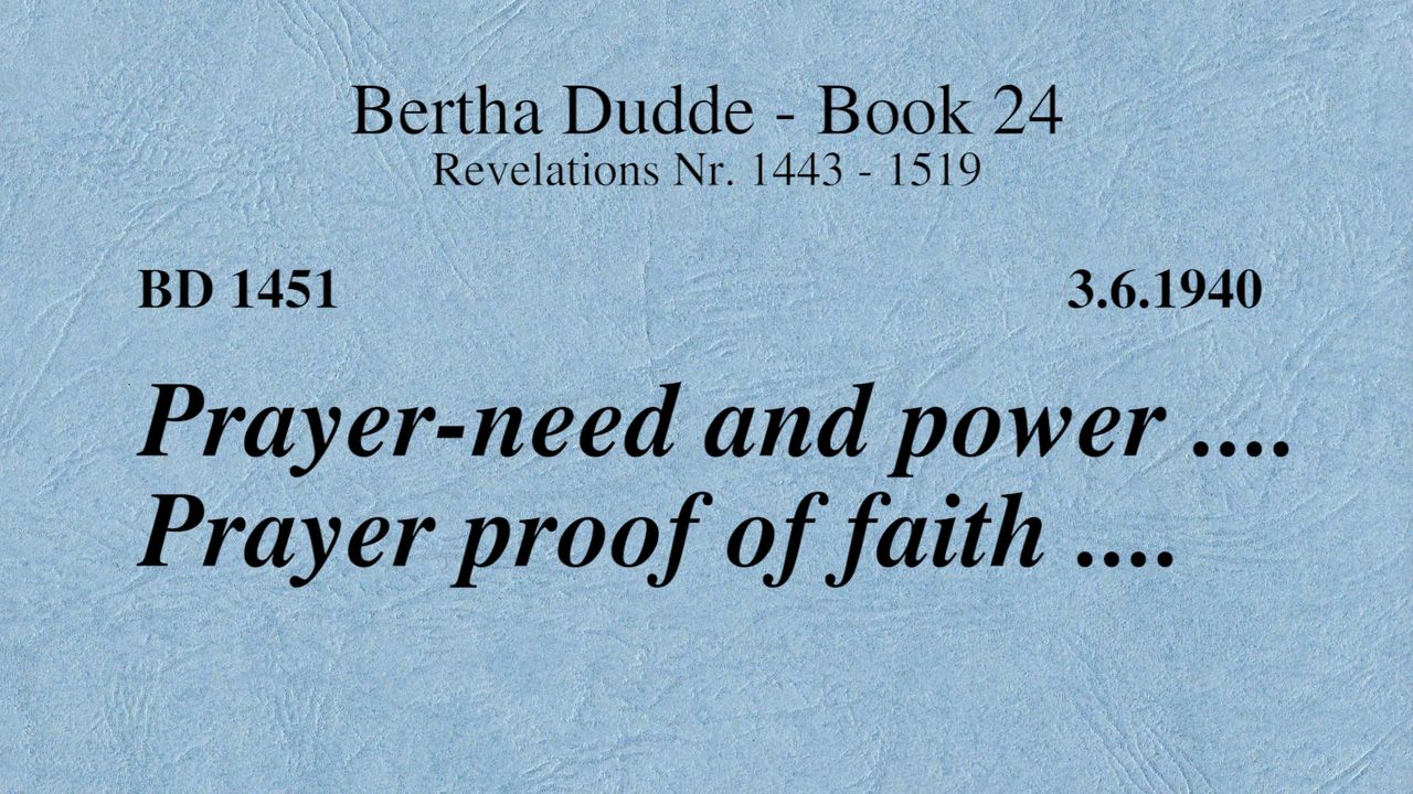 BD 1451 - PRAYER-NEED AND POWER .... PRAYER PROOF OF FAITH ....
