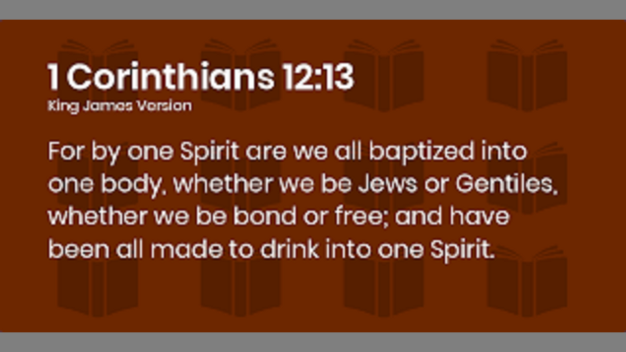 13 For we were all baptized by[a] one Spirit so as to form one body—whether Jews or Gentiles, slave or free—and we were all given the one Spirit to drink. 1 Corinthians 12:13
