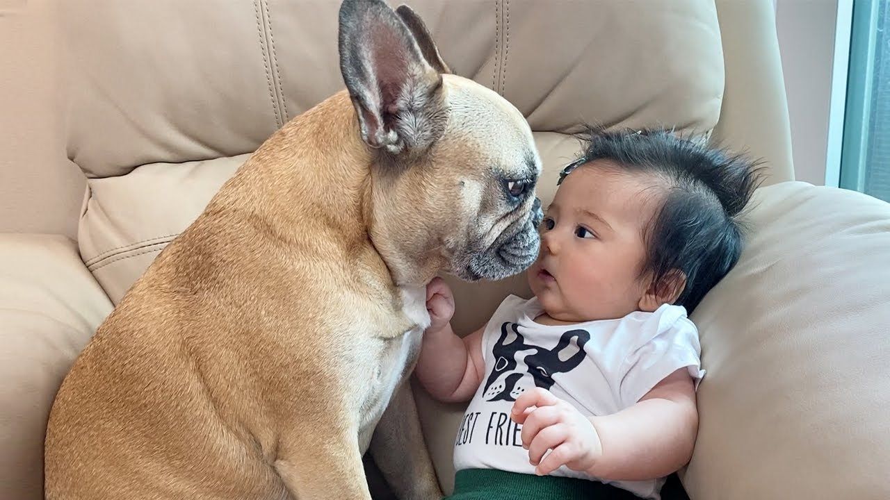Our dogs fall in love and become best friends with our baby, the full story! Our dogs love our little baby girl! French Bulldogs Griffin and Haru are best friends with our newborn baby and are growing up together with our baby. This is the full story of how our dogs came to love our baby. From when they met our newborn baby for the first time to now our baby being 3 months old!They have the sweetest dog baby relationship. Hope yo enjoy today's video, sorry if you tear up, this is the sweetest cutest dog baby video!