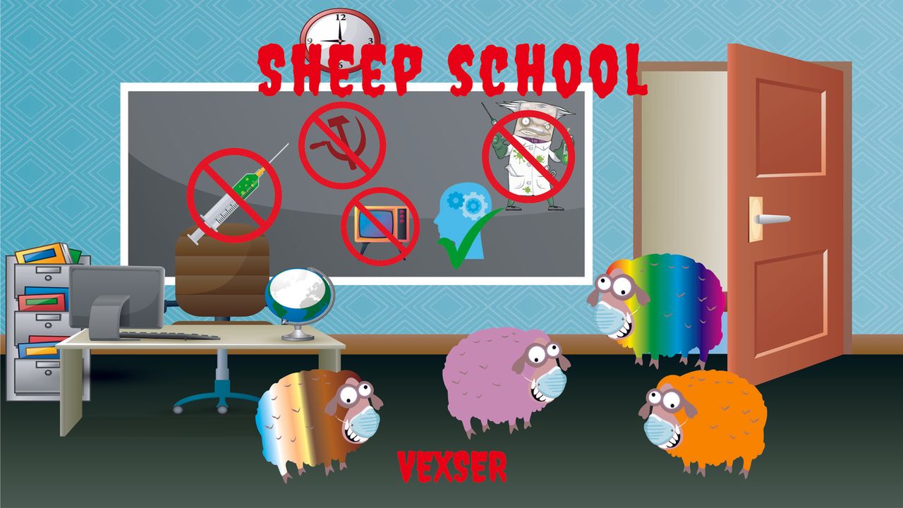Song about sheep needing to go back to school because they are so stupid in wanting muzzles and jabs.