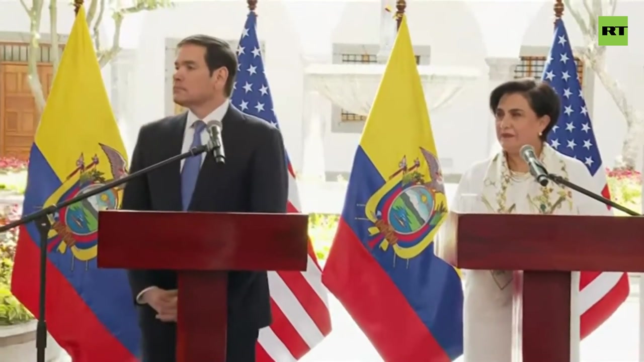 FM of Ecuador Gabriela Sommerfeld and the Secretary of State of the U.S. Marco Rubio gave a press conference after the meeting with President Daniel Noboa.