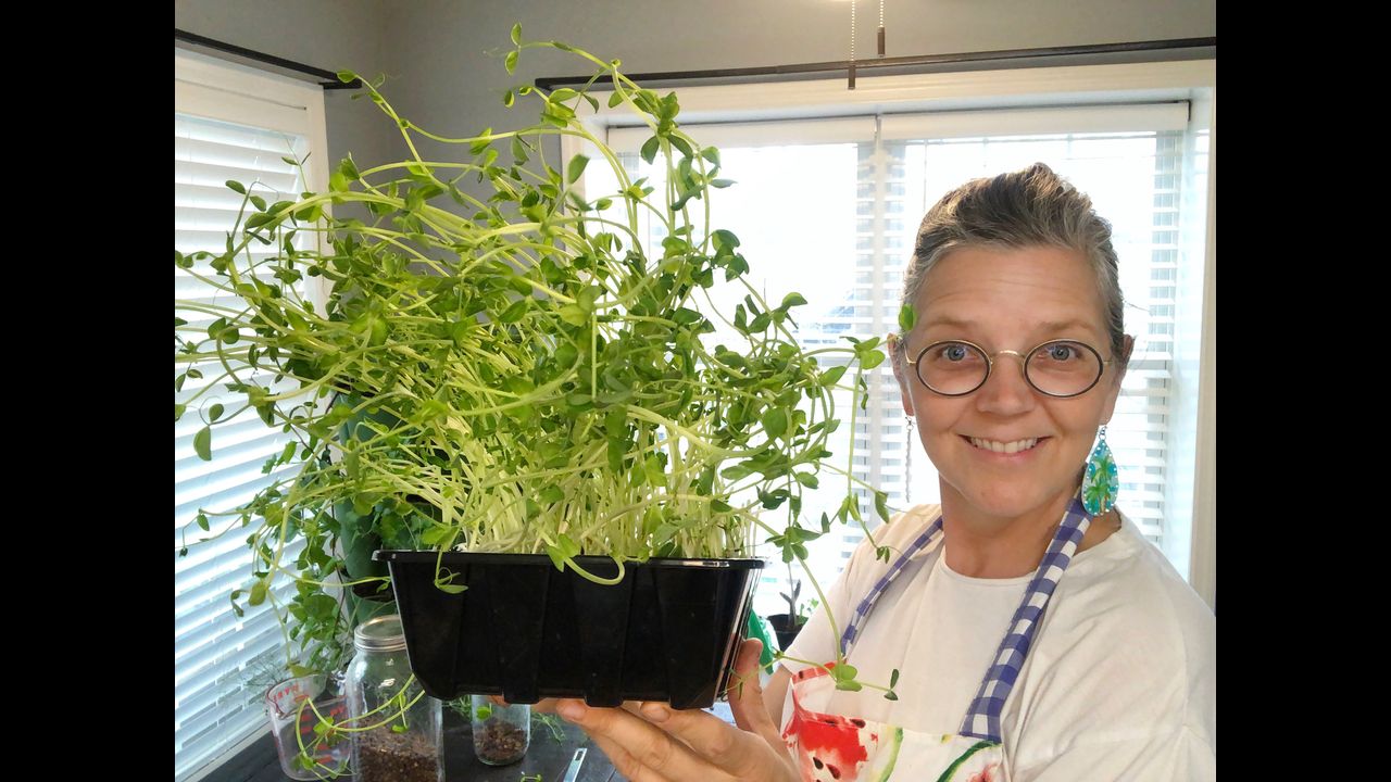 Pea Shoots are one of my most favorite microgreens! Super easy to grow indoors year round, 7-10 days till harvest, no grow lights needed, no bugs, no fertilizer. Oh and so TASTY!