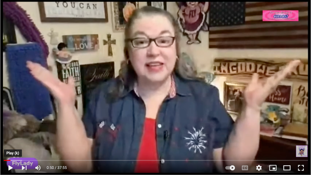 What is Standing In Your Way? Use Coupon Code FREEDOM40 to save 40% Half-Price Sale on Swish Pack https://shop.flylady.net/p/(SPACK) Flash Sale for New Pack of Inspiration https://shop.flylady.net/p/(INSPACK) Thank You! We just hit 103,000 family members on Youtube! CHAOS to Clean; in 31 Easy BabySteps https://shop.flylady.net/p/(CC) I have set up a Patreon Page in order to have a platform that is free of censorship. https://www.patreon.com/theflylady Out of the Darkness; Coming Through Depression https://www.amazon.com/OUT-What is Standing In Your Way?