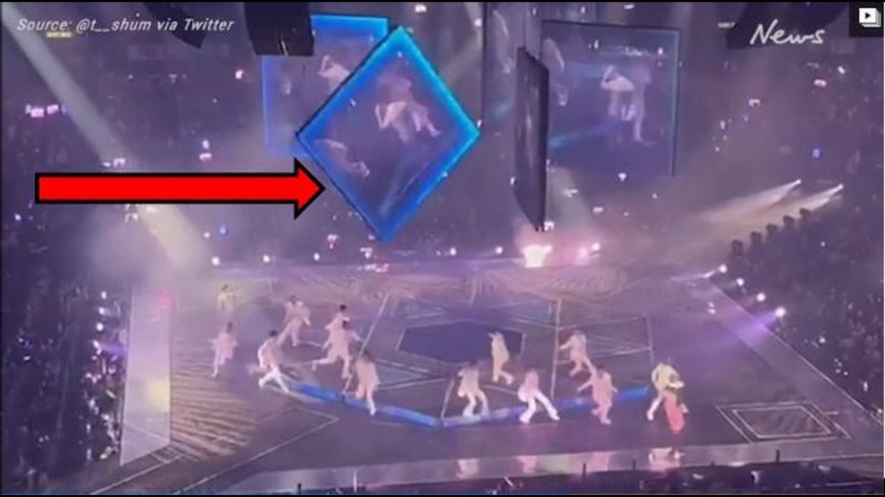 Quotation: Disturbing footage shows the moment several members of a Hong Kong boy band were crushed when a giant video screen fell onto the stage. At least three people â including a member of the Hong Kong Cantopop boy band Mirror â were injured on Thursday when a giant video screen fell and crushed them during a concert. Fans caught the horrific incident at the Hong Kong Coliseum on video and posted it to social media. The footage shows one of the many floating screens above the stage coming unhinged and landing on performers, the NY Post reports. It is unclear which of Mirrorâs 12 members was injured, but the South China Morning Post reported that two of the bandâs male dancers â including a popular dancer known as Mo â were taken to the hospital. Their current condition was unknown. The concert was quickly stopped, as the outlet reported that the bandâs manager, Ahfa Wong Wai-kwan, came onstage to address the worried crowd.