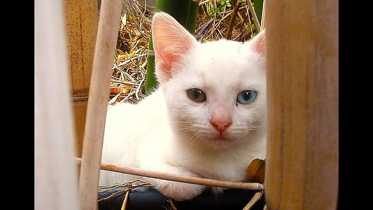 I’ve now named this taming stray kitten, ‘Tiny’, as it is half the size of its siblings, and it delights me every day. It has different coloured eyes.