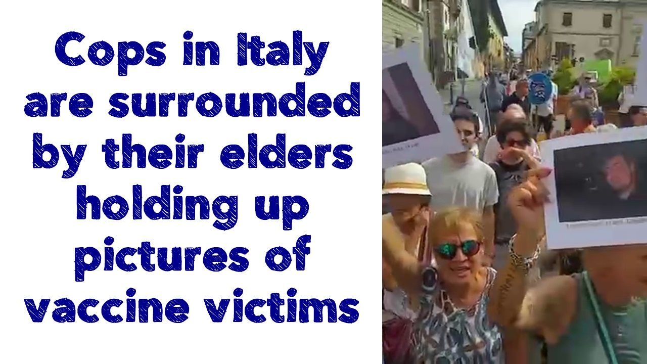 Cops in Italy are surrounded by their elders holding up pictures of vaccine victims.... the tide is changing worldwide....