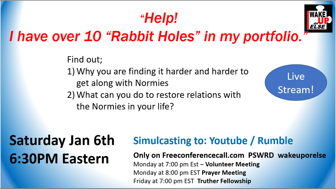 Learn what it's like when your truther journey reaches a certain threshold, and you go beyond the path of no return.....you become so embroiled in the unfolding great awakening that you leave your Normie friend's and family behind. Unless they stop lying to themselves, there are no answers to the relational barriers that they have erected between you and them. You can be in their lives but they are a million miles away from you by their own choice. There is nothing you can do.