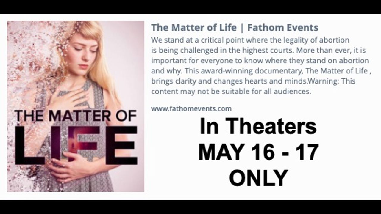 The Matter of LIfe - The Abortion Issue - In Theaters May 16 & 17 - Trailer & Tickets Here