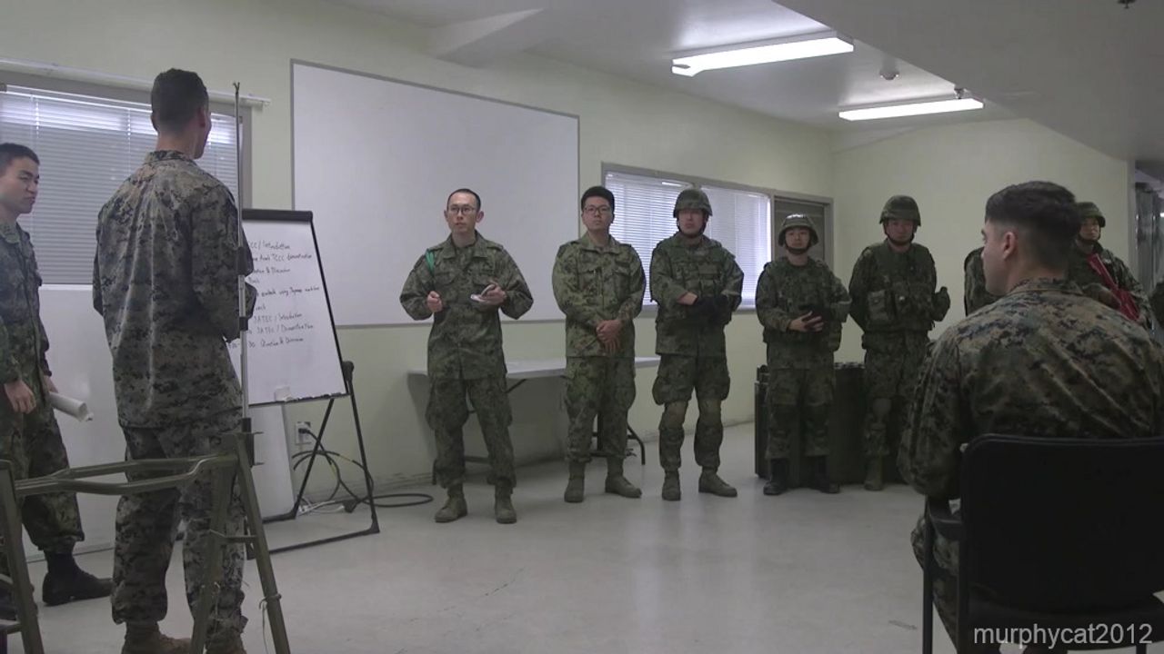 Japan Ground Self-Defense Force soldiers with Amphibious Rapid Deployment Brigade demonstrate combat casualty care procedures for U.S. Sailors with 1st Medical Battalion during Exercise Iron Fist 2020 on Marine Corps Base Camp Pendleton, California, Jan. 16. Exercise Iron Fist provides realistic, relevant training necessary for effective combined military operations. (U.S. Marine Corps video by Cpl. Patrick Crosby)