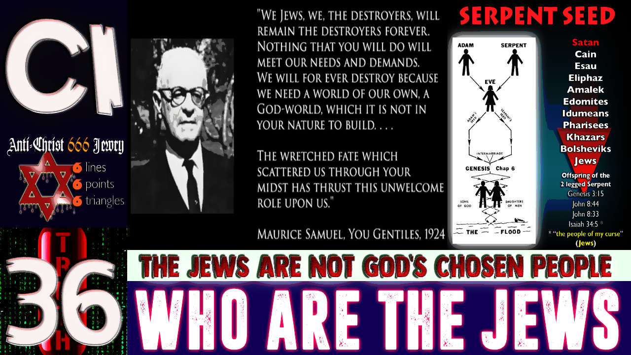 CI-36: The Jews are NOT God's Chosen People // Major RED PILL. PT has edited and added graphics to a video titled, "The Jews are NOT God's Chosen People". The author does an excellent job overall bringing this point forward. This is a video to share far and wide. This RED PILL will literally SET ONE FREE "Legally" from Satan's Prison and Jurisdiction.