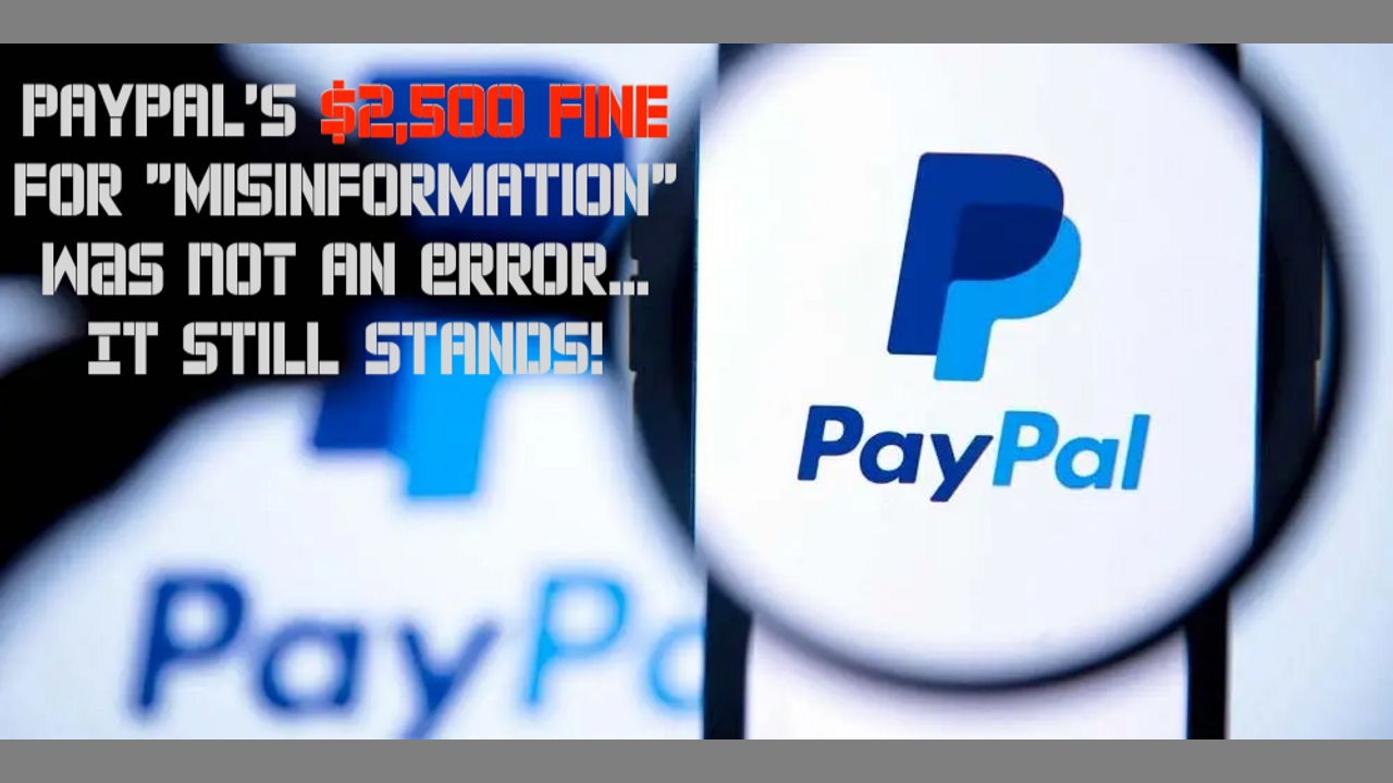 Despite PayPal Telling Everyone Its $2,500 Fine for "Misinformation" Was An Error It's Still Their Official Policy
