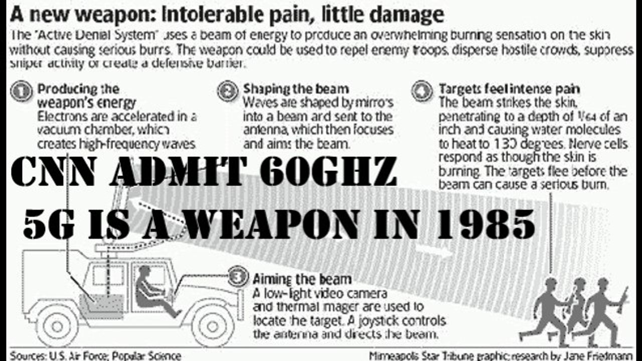 Referring back to a broadcast on CNN in 1985 in which they discuss the future of warfare and weaponry, touching on microwave weapons operating in the 60ghz frequency range, ie. the same frequencies which 5G will operate using (60ghz is the OXYGEN Absorbing frequency). They also talk about mind control, literally frying humans, and taking out planes mid-flight with microwave weapons. The truth is and always was, out there.