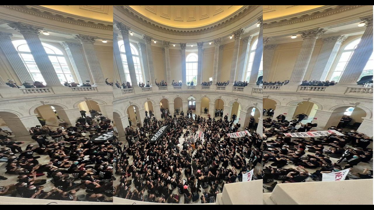 Screaming leftists shut down the rotunda in the US Capitol screaming for a ceasefire in Gaza. The leftists were dressed as Jews but who knows.