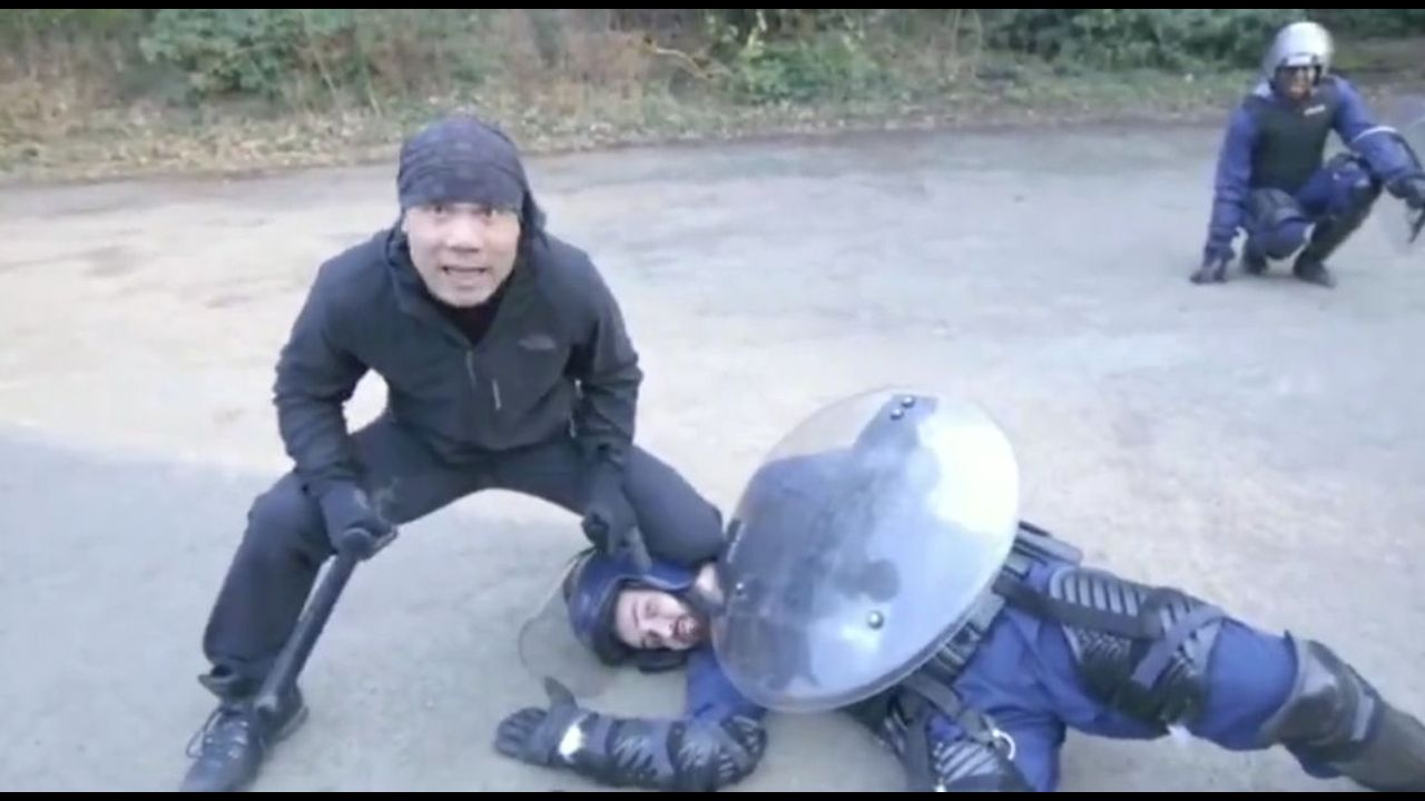 Although physically grappling with a riot cop is absolutely the WORST way to handle one, there could be a situation where you are forced to contend with a riot enforcer in this manner. Master Wong helps you deal with your problem.