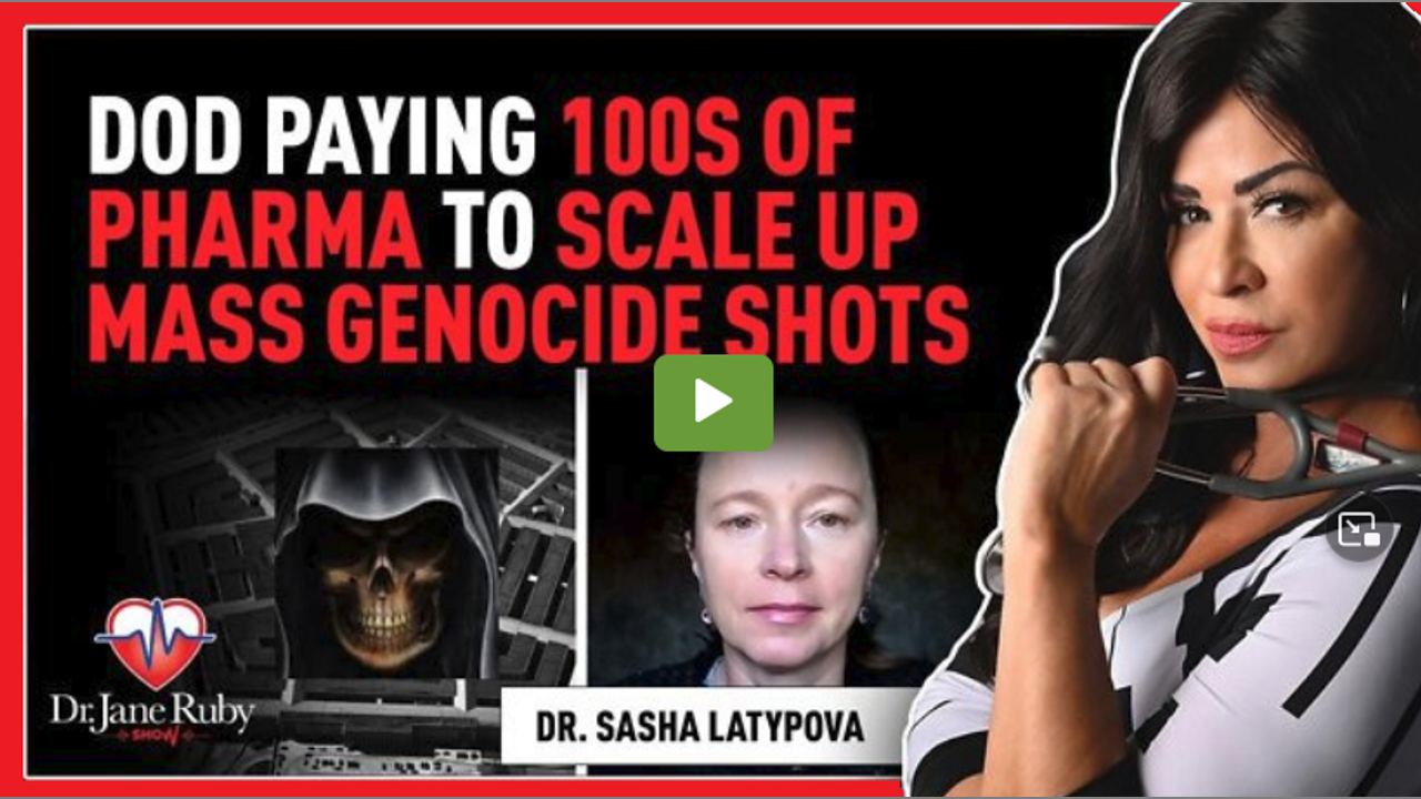 Credits to Stew Peters Network, September 30, 2022:Dr. Jane Ruby: PROOF: DOD Using 100’s of Pharma To Scale Up Mass Genocide Against Americans: https://rumble.com/v1m6rk6-live-7pm-proof-dod-using-100s-of-pharma-to-scale-up-mass-genocide-against-a.html