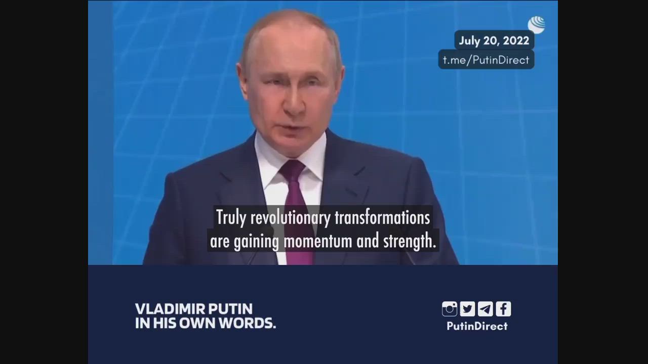 Putin blasts the globalist liberal order as totalitarian and asserts that the West came to dominate the world by plundering entire continents.